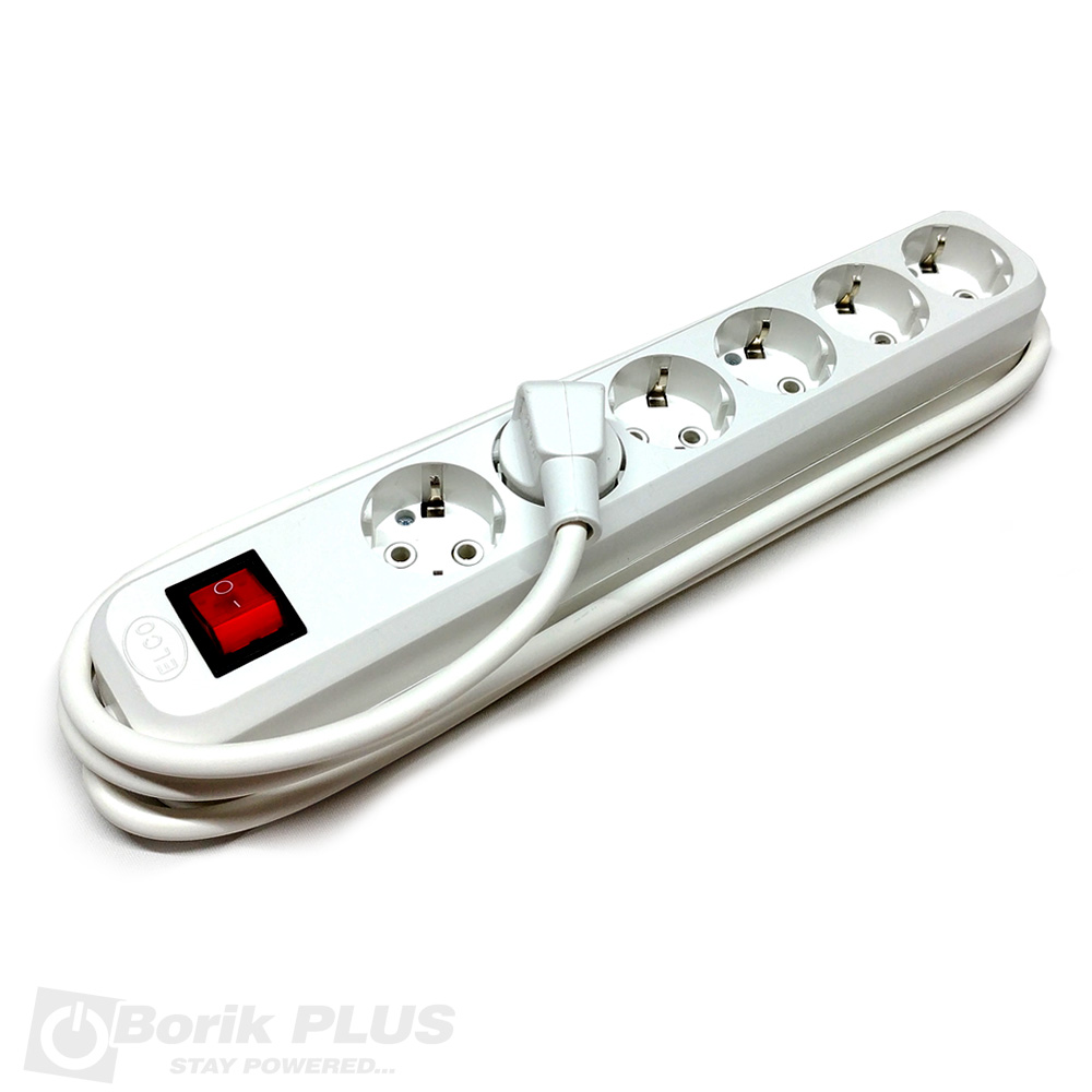 Sestrostuka prenosna priključnica bele boje sa prekidacem. Koristi se kao razdelnik za napajanje do sest potrosaca sa šuko uticnicama. Za struju do 16A, i maksimalnog napona do 250V. Maksimalno snaga svih potrosaca prikacenih na produzni kabl ne sme biti veca od 3500W. Provodnik (kabl) H05VV-F 3G1,5 (PP/J-Y 3×1,5) sa dužinom provodnika: 2m. sa prekidačem