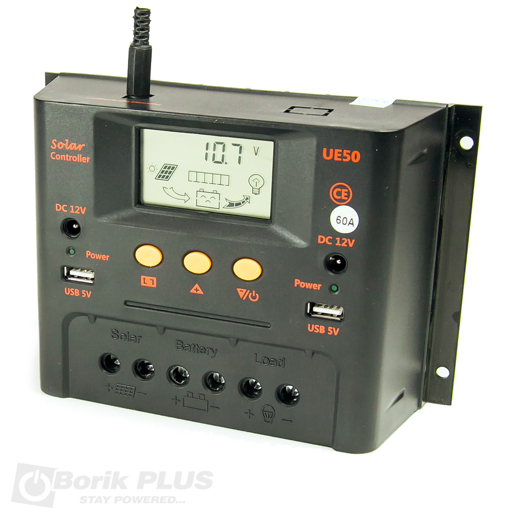 Kontroler punjenja i praznjenja fotonaponskog solarnog sistema vrhunskog kvaliteta 60A. Poseduje temperaturni senzor i kompenzuje napon punjenja. PWM tehnologija sa automatskim prepoznavanjem radnog napona 12 ili 24V. Poseduje LCD ekran sa svim graficikim parametrima. Nezavisno od napona sistema na sebi poseduje po dva izlaza za potrosace od 12V i 5V za napajanje manjih potrosaca. Snaga potrosaca na ovim izlazima je ogranicena i nalazi se u tabeli nize.